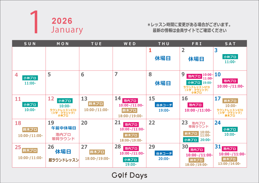 ・1月9日(木)・12日(月)ラウンドレッスンスタンダード:小林プロ