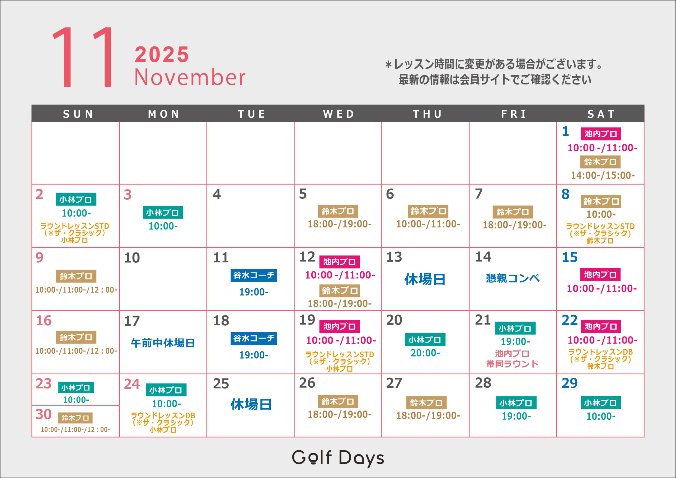ニュース・11月2日(日)ラウンドレッスンスタンダード:小林プロ