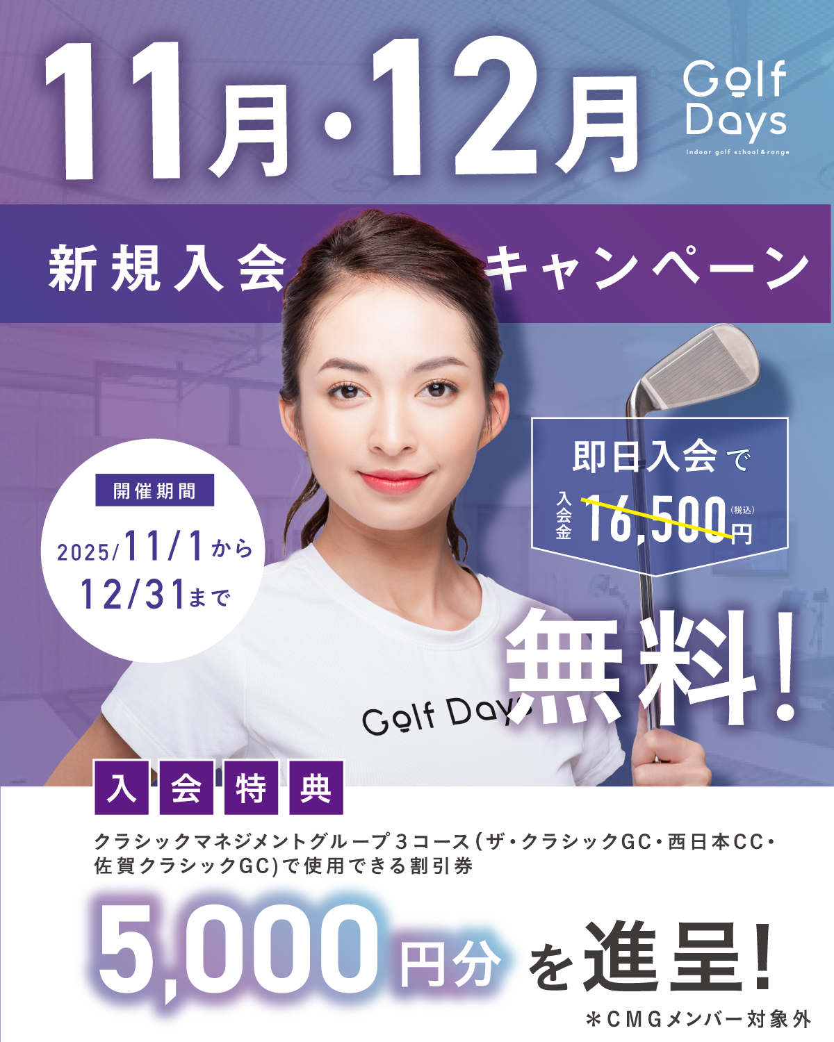 年末入会キャンペーン!! 入会金無料&ゴルフ場プレイ割引券5,000円分プレゼント🎁